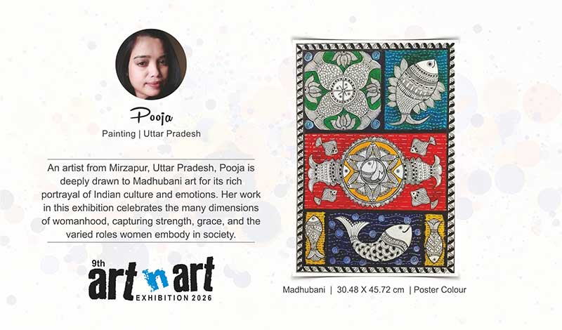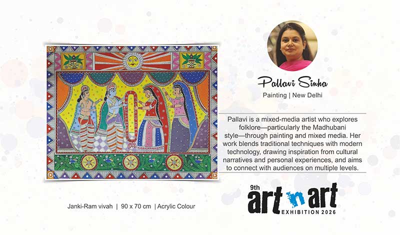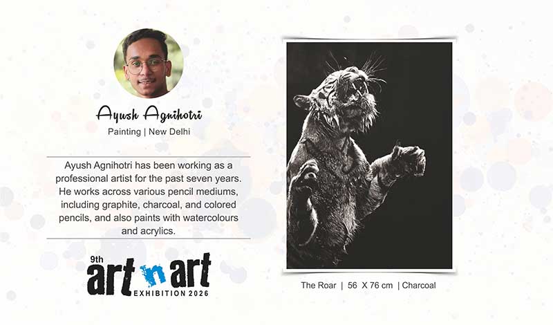 Nav Shri Art & Culture Organisation organised the ‘Art N Art’ National Level Art Exhibition 2026, a group show of Drawing, Painting, Art & Craft, held from 16th to 22nd January 2026 at Artizen Art Gallery, Bahadur Shah Zafar Marg, I.T.O., New Delhi. The exhibition was inaugurated by Dr. Urvashi Mittal (Social Worker), Dr. Prabhu Mishra (Founder President – IASRM), and Dr. Poonam Singh (Founder of Saubhagya Care Foundation). A total of 32 renowned and emerging artists from across India participated in the exhibition and showcased their creative artworks. The exhibition was successfully organised under the leadership of Mr. Mohit Manocha, President of Nav Shri Art & Culture Organisation.