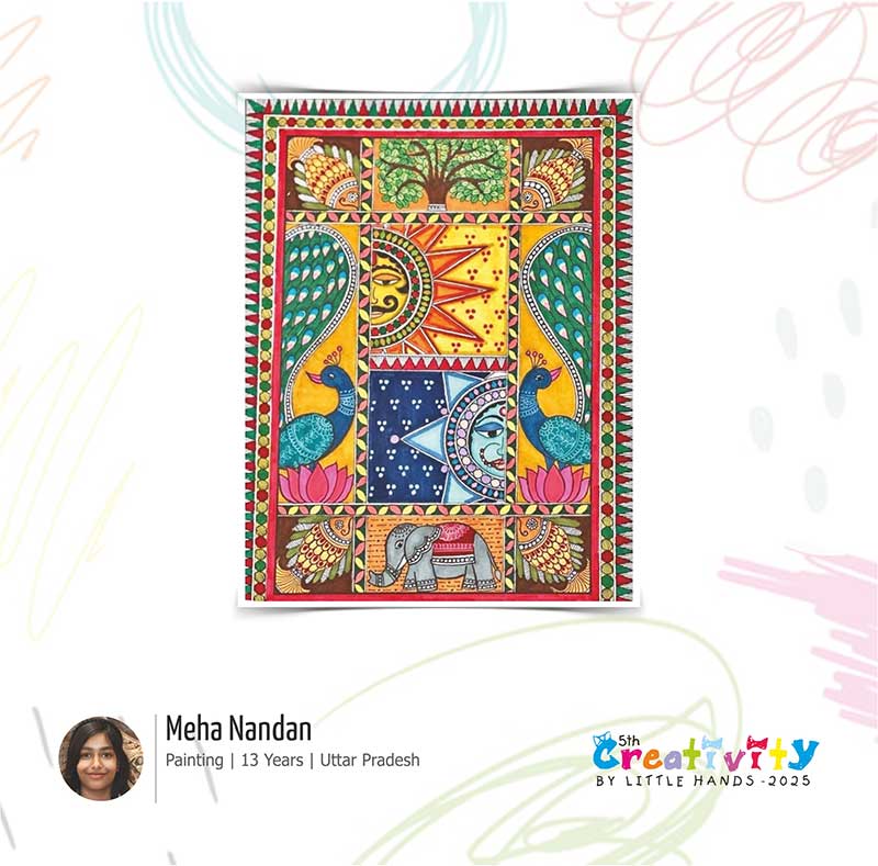 Nav Shri Art & Culture Organisation organised the 5th Creativity by Little Hands 2025, a National Level Art Exhibition of Drawing & Painting, Art & Craft for children aged 5 to 17 years, held from 25th to 27th April 2025 at Artizen Art Gallery, Bahadur Shah Zafar Marg, I.T.O., New Delhi. The exhibition was graced and awards were presented by Dr. Harvinder Mankkar, the Creator of the Famous Children's Cartoon Characters Motu–Patlu; Mr.Vijender Sharma, Renowned Artist; Ms.Richa Mehta, Model; Ms.Rakhi Neha, Author & Anchor; and Dr.Poonam Singh, Founder of Saubhagya Care Foundation. A total of 34 children from various schools and institutes across India participated in the exhibition and showcased their creative artworks.